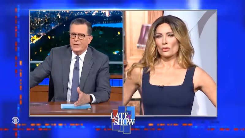 She’s been Colbert’s unofficial First Lady-in-Residence for nearly a decade, parodying Melania Trump with surgical precision. But on this particular night, she dialed the chaos up to 11.